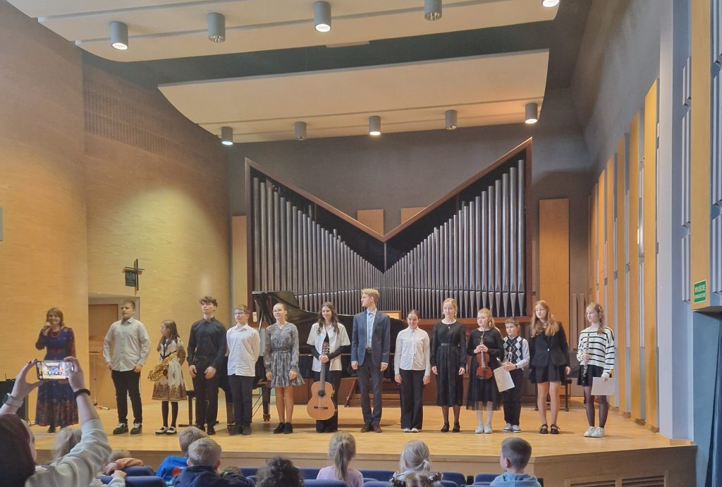 18 listopada 2025 r. uczniowie klas IV–VII udali się do Szkoły Muzycznej w Nowym Targu na koncert pod tytułem „Polskie tańce narodowe”. Celem wyjazdu było rozwijanie zainteresowań muzycznych uczniów oraz wzbogacenie ich wiedzy na temat polskich tańców narodowych.