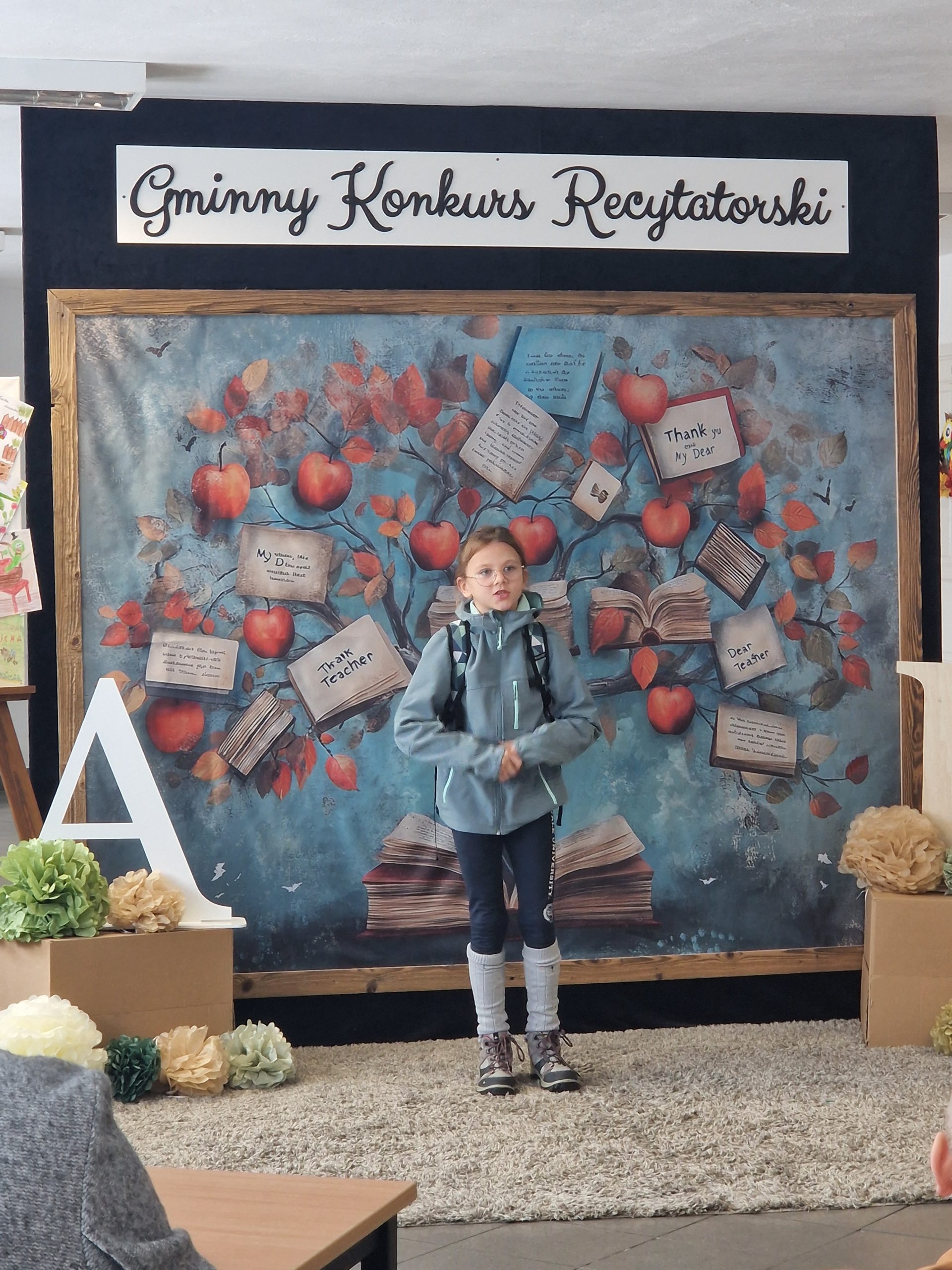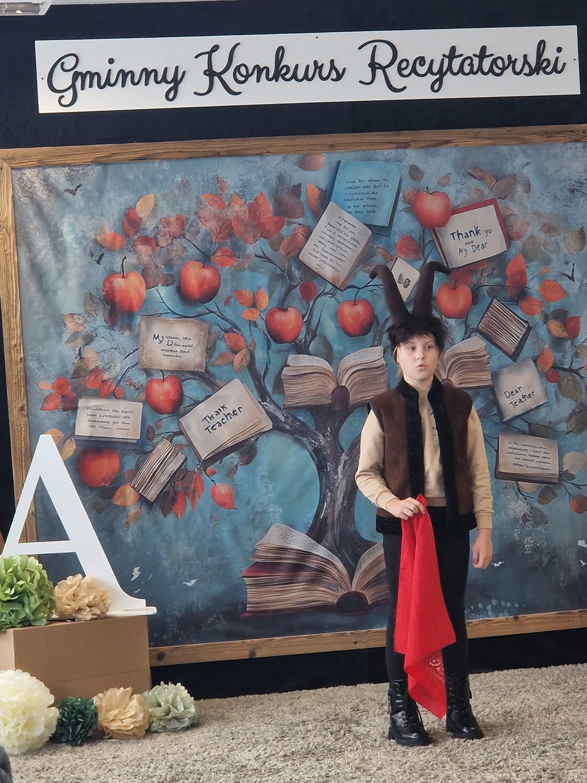 Z ogromną radością informujemy, że Antonia okazała się bezkonkurencyjna, zdobywając I miejsce za wspaniałą interpretację wiersza „Pchła Szachrajka”. Jej występ zachwycił jury i publiczność nie tylko świetną dykcją i sceniczną swobodą, lecz także teatralną interpretacją, która doskonale oddała charakter bohaterki utworu.