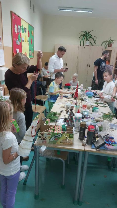 19 listopada jedna z sal w naszej szkole stała się prawdziwym warsztatem rękodzielniczym. Rodzice i dzieci z zapałem wykonywali piękne stroiki, wykazując przy tym wiele pomysłowości i kreatywności. Wspólna twórczość, zaangażowanie, przeżyte emocje, a co najważniejsze czas, który dzieci spędziły z rodzicami, to bardzo cenne doświadczenie dla obu stron.