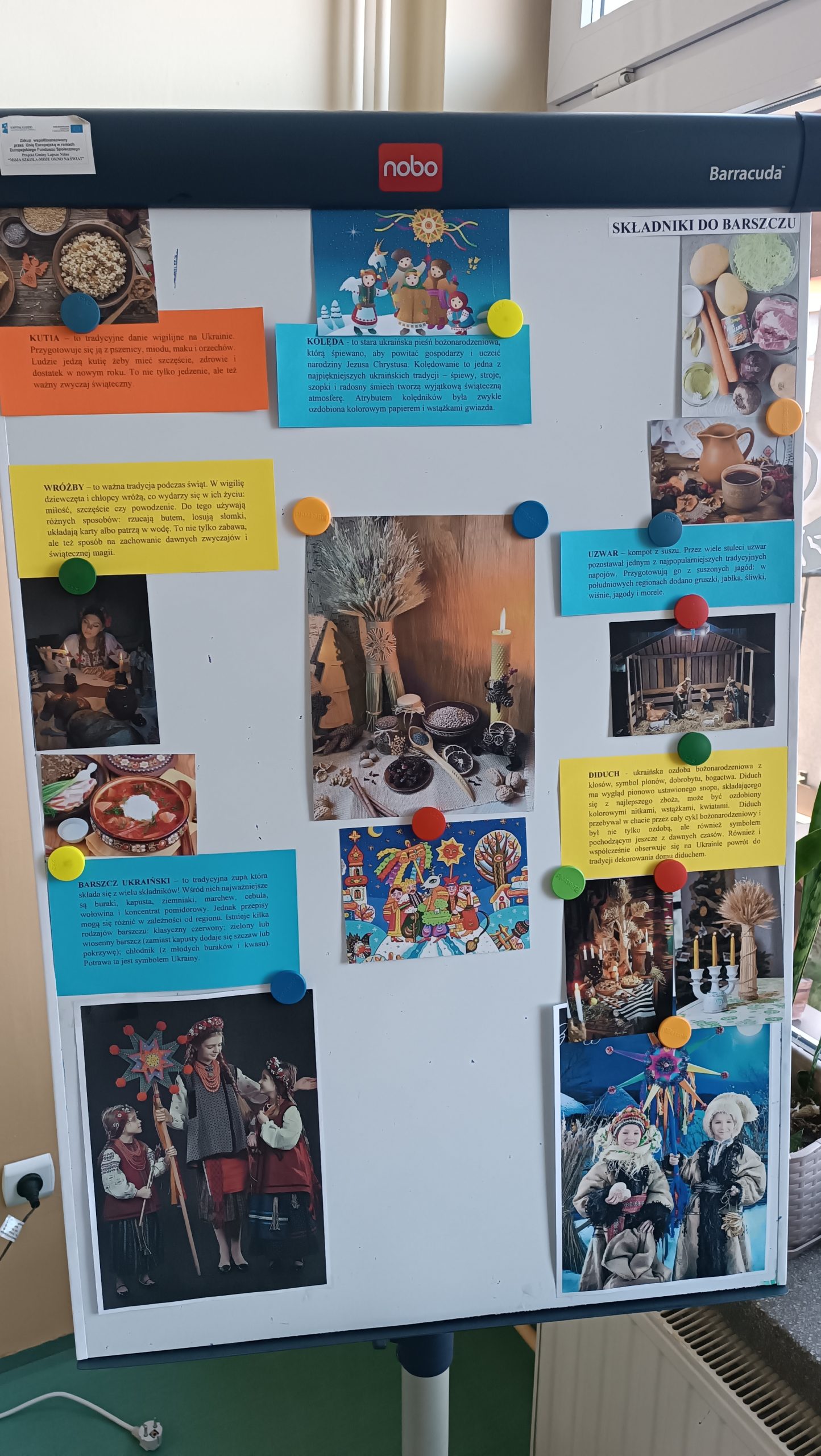 Uczniom zaprezentowano potrawy od wieków obecne na świątecznym stole: ukraiński barszcz, kutię, pampuchy oraz uzwar. Każda z tych potraw niesie ze sobą głęboką symbolikę związaną z dostatkiem, jednością rodziny oraz wdzięcznością. Świąteczny stół został udekorowany zgodnie z dawnymi tradycjami, co pozwoliło stworzyć atmosferę autentyczności i szacunku dla dziedzictwa kulturowego.